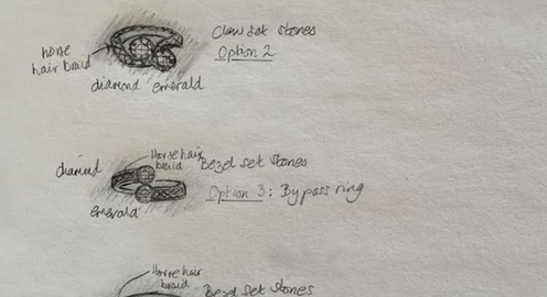 This journey started off at my inlaid woven channel ring with a request for 2 lines of silver Brocade thread set in the weave and the ring cast in white gold. Then we explored how to include a few diamonds to celebrate this rather special thoroughbred mare.